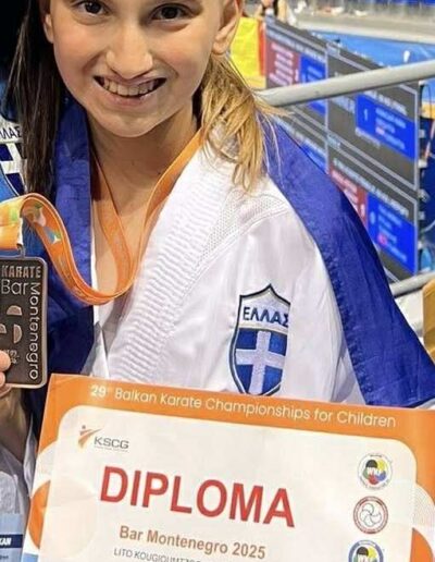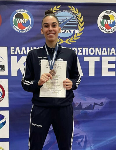 Χρυσή πρωταθλήτρια Ελλάδος Βαλκανιονίκης Χρυσό Βαλκανικό στο Ομαδικό κάτα και Χάλκινο Βαλκανικό στο ατομικό